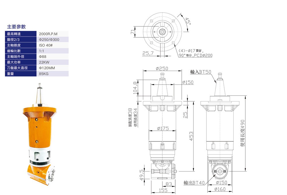KS-A63 小型延伸角銑頭